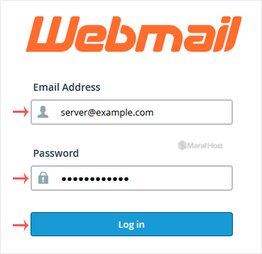 1. http://example.com/webmail را باز کنید، example.com را با نام دامنه خود جایگزین کنید، آدرس ایمیل و رمز عبور کامل خود را در جزییات ورود کاربر وارد و روی ورود کلیک کنید.