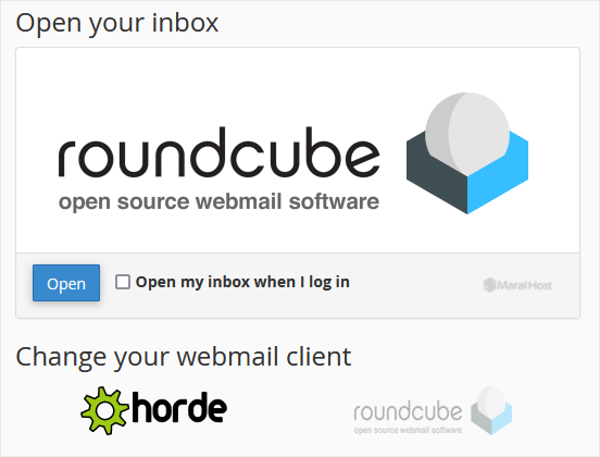 2. از صفحه وب‌میل cPanel، روی هر وب‌میل مانند Horde، Roundcube یا هر برنامه موجود دیگری کلیک کنید.