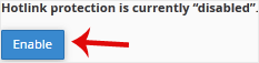 3- چنانچه نشان میدهد که Hotlink protection is currently disabled، روی Enable کلیک نمایید.