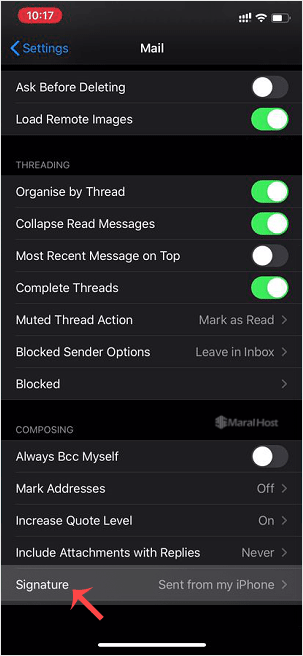 اگر از طریق iOS ایمیل ارسال کنید، امضایی به طور خودکار در پاسخ شما اضافه میشود، مانند Sent from my iPhone. میتوانید این امضا را نیز شخصی سازی نمایید.