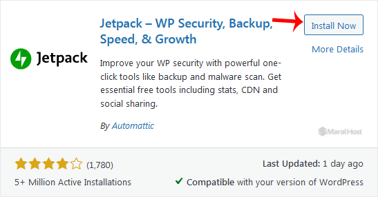 4- به این ترتیب افزونههای موجود مطابق با کلمه کلیدی Security ظاهر میشوند. روی Install Now در کنار نام افزونه کلیک نمایید.
