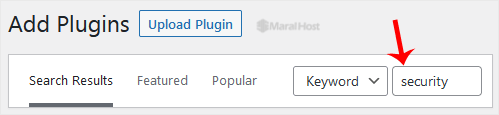 3- از فیلتر جستجو (Search) برای یافتن افزونهها استفاده کنید. Security را تایپ نمایید تا افزونههای مربوط به آن را پیدا کنید.