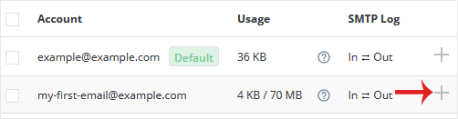 3. در زیر لیست حساب ایمیل، آدرس ایمیل با نماد مثبت در سمت راست ظاهر میشود.