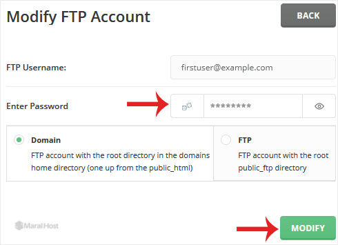 برای تغییر اکانت اصلی FTP روت، باید رمز عبور اکانت دایرکت ادمین خود را تغییر دهید. با این حال، اگر نیاز به تغییر رمز عبور یک حساب FTP خاص دارید، این دستورالعمل را دنبال کنید.
